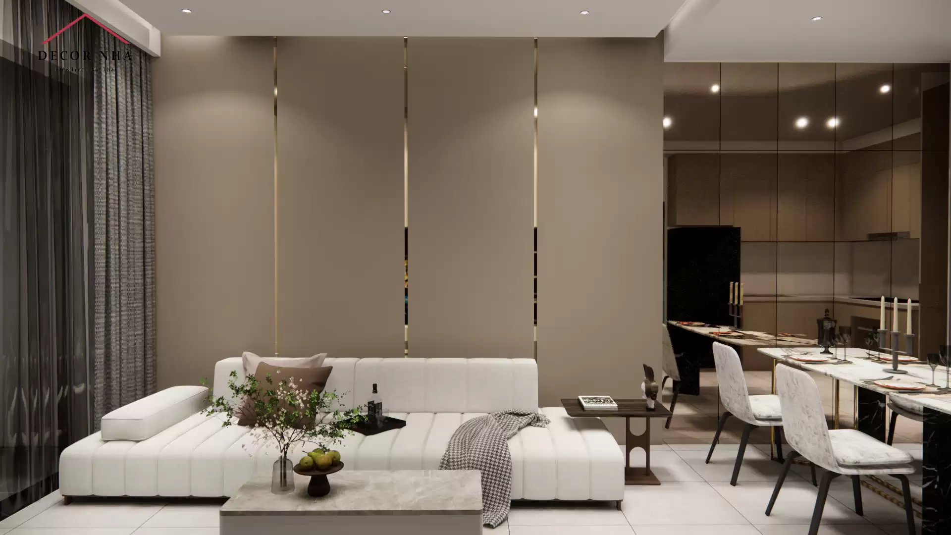 CĂN 2 PHÒNG NGỦ- CHUNG CƯ PRIVIA KHANG ĐIỀN Sự kết hợp giữa Minimalism (tối giản) và Contemporary Luxury (sang trọng đương đại) Căn 2